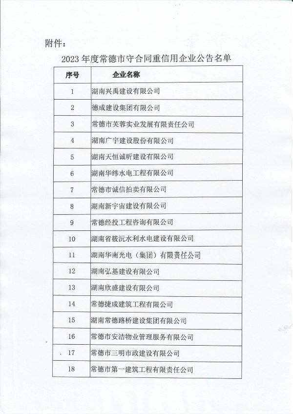- 2023年度常德市守合同重信用企业公告