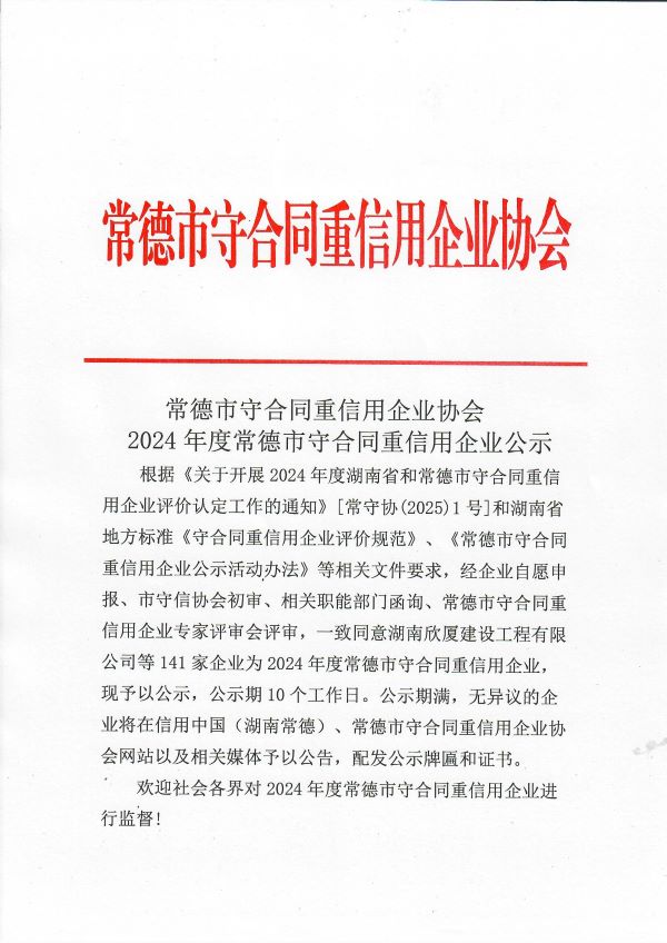关于开展2024年度湖南省和常德市守合同重信用企业评价认定工作的通知