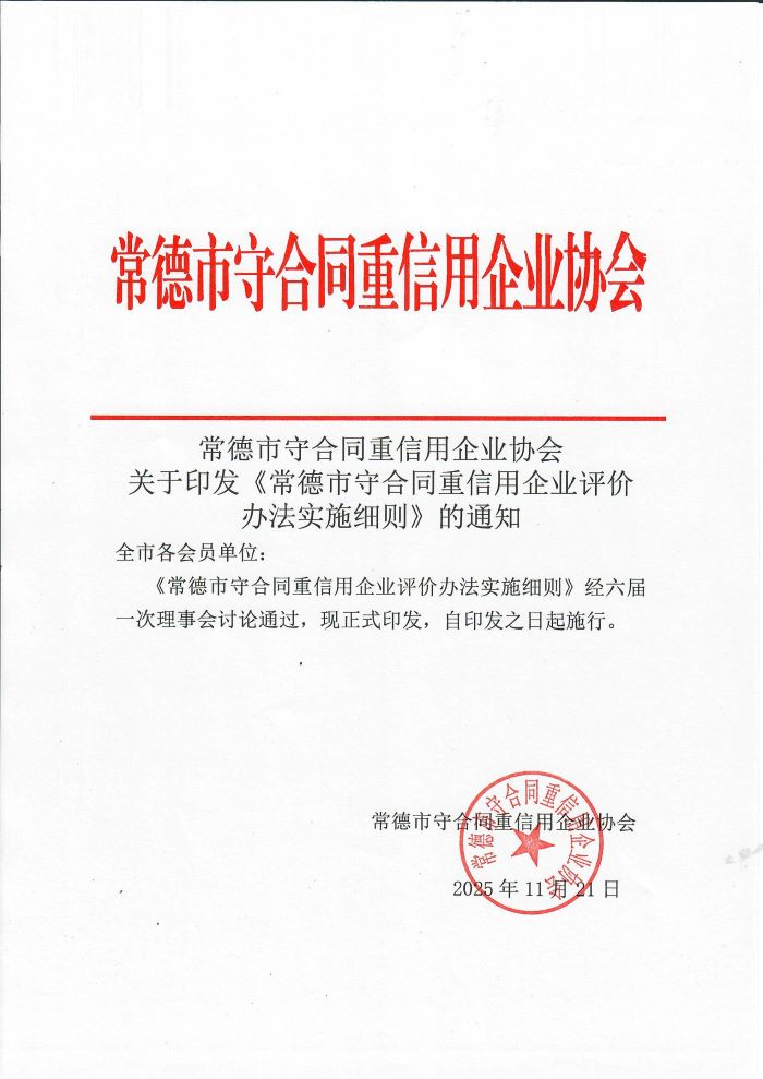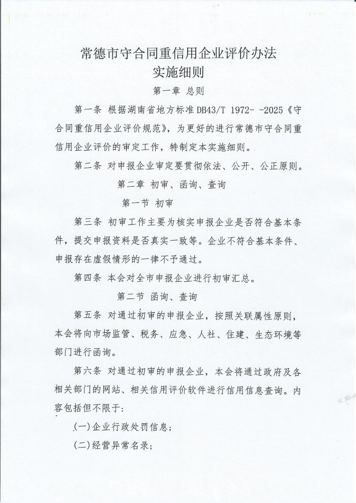 - 关于印发《常德市守合同重信用企业评价办法实施细则》的通知