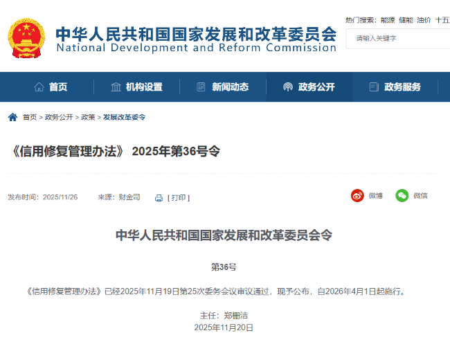 近日,国家发展改革委正式发布《信用修复管理办法》(以下简称“新规”),明确自2026年4月1日起施行,全面取代2023年的试行办法。作为对试行办法的全面优化升级,新规进一步统一标准、简化流程、强化保障,无论是轻微失信的“小失误”,还是重整期的“大困境”,企业都能通过新规找到明确的信用修复路径。以下从企业实际需求出发,结合官方解读与实操要点,一文理清新规核心内容。